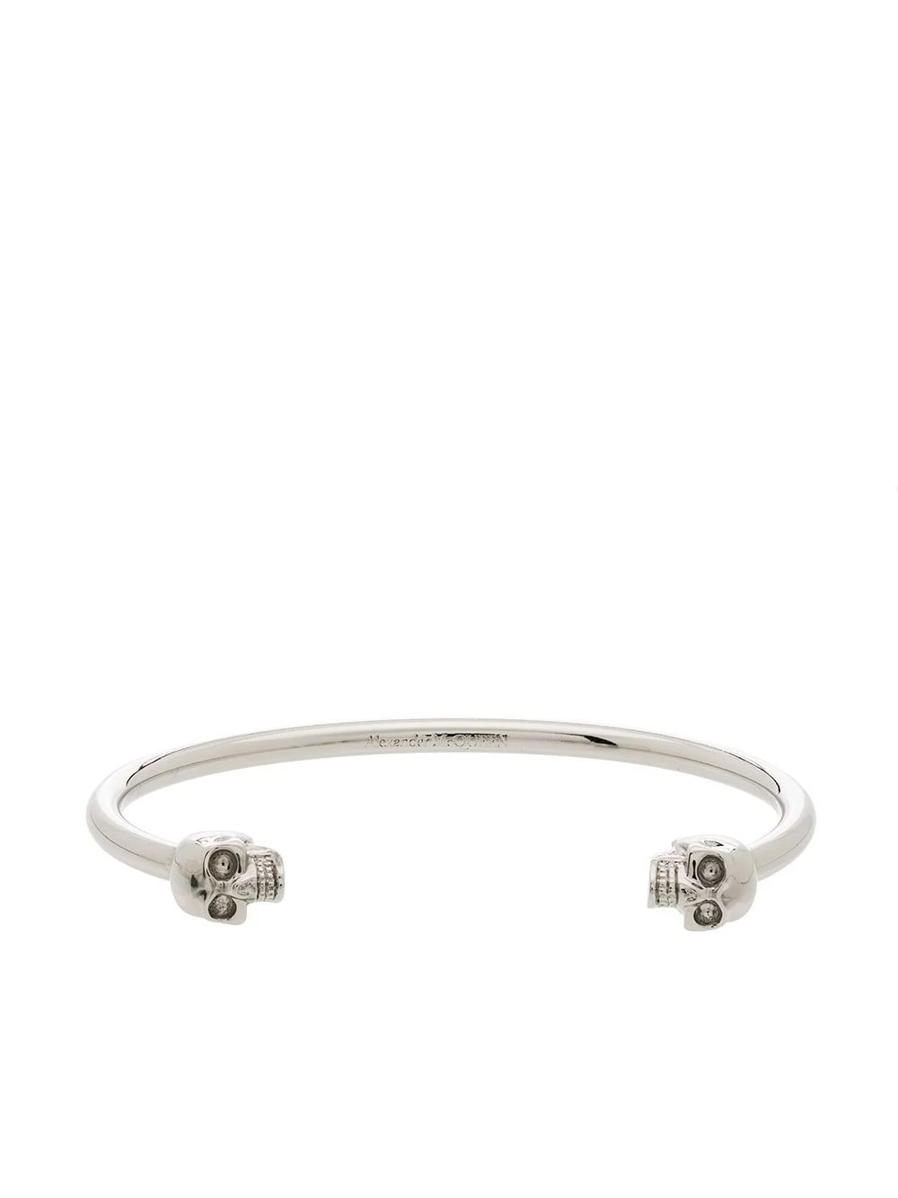 Hauntingly elegant, this thin Twin Skull bracelet from Alexander McQueen is the perfect way to add a little beauty to your wrists, featuring an engraved signature on the inside of the band, a cuff design with a skull detail to each end and an antique-effect silver-tone finish.