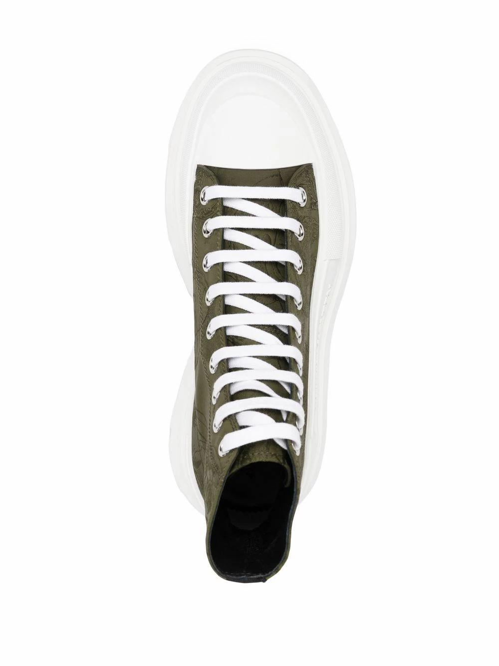 First seen on Alexander McQueen’s SS20 runway, the Tread Slick sneakers have taken on an array of new forms and colourways ever since. Here, they’re presented in an ultra-durable high-top boot style, yet remain atop the house’s signature and recognisable chunky rubber sole.