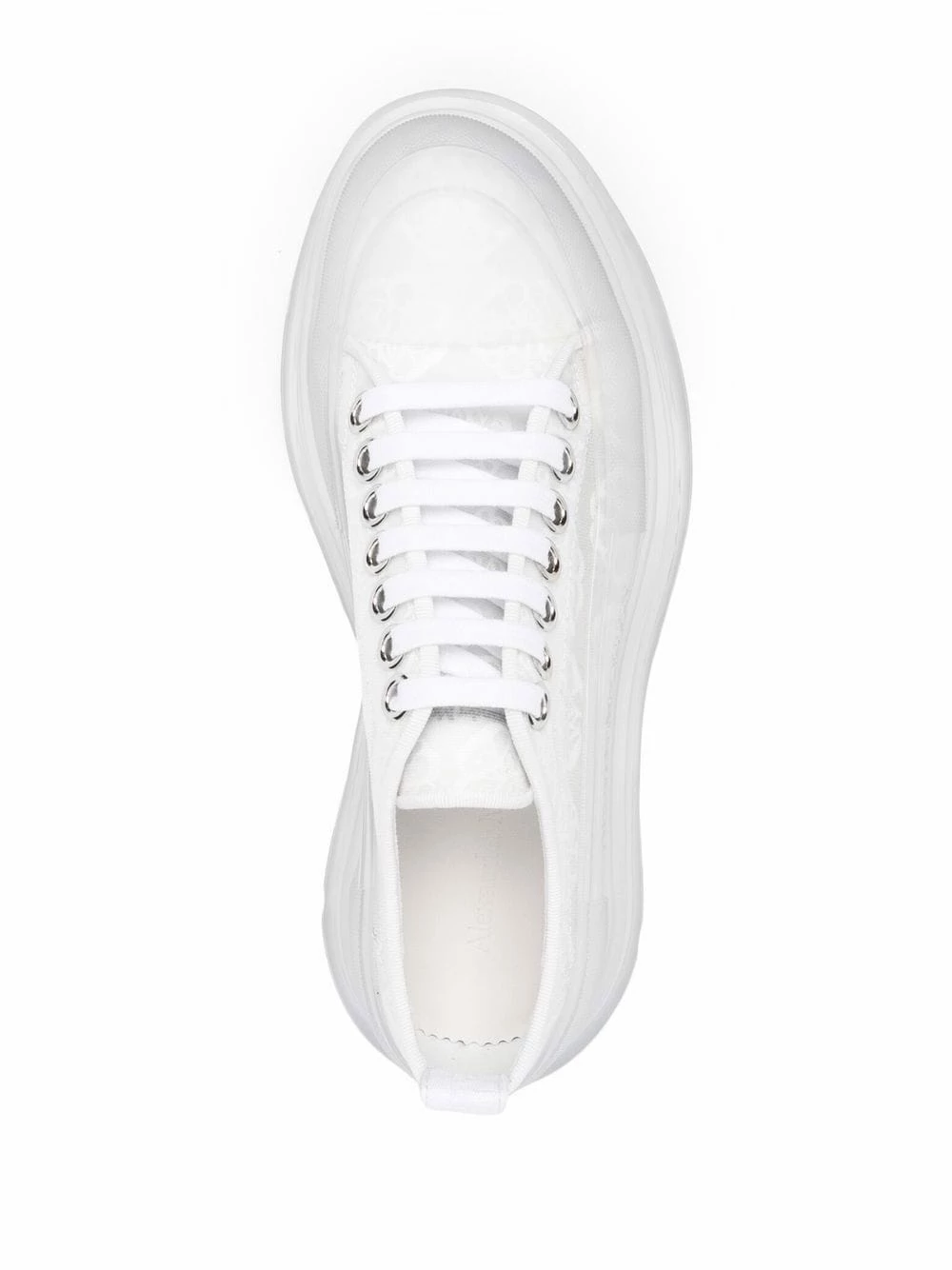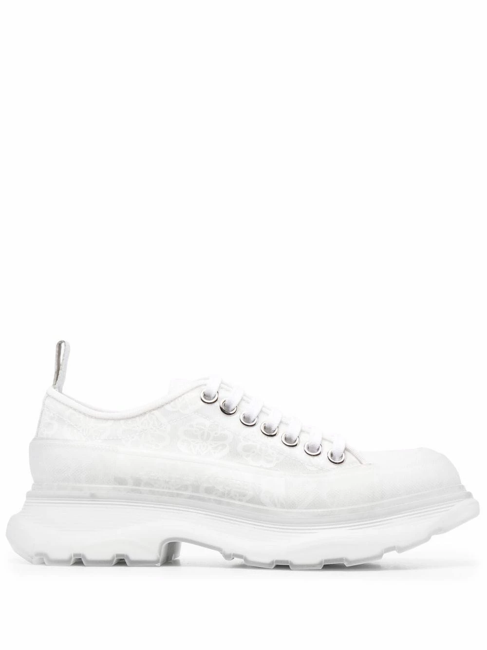 Chunky shoes are having a major moment – make room for these Tread Slick lace-ups from Alexander McQueen. Designed as part of the Hybrid collection, these transparent pair have been created with an all-over seal logo print and an oversized rubber tread sole. Get the best of both worlds.Â