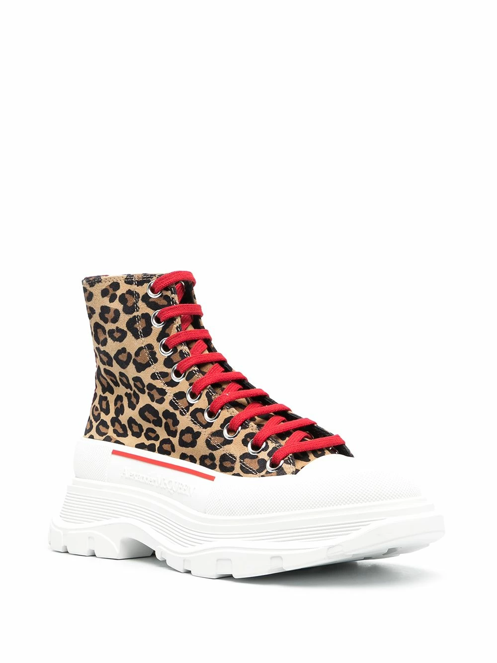 Take a walk on the wild side. Alexander McQueen can’t quite take you on that safari you’ve always dreamed of, but the British fashion house can add some drama to your city strolls with this pair of leopard print Tread Slick high-top sneakers. And that’ll do for now.