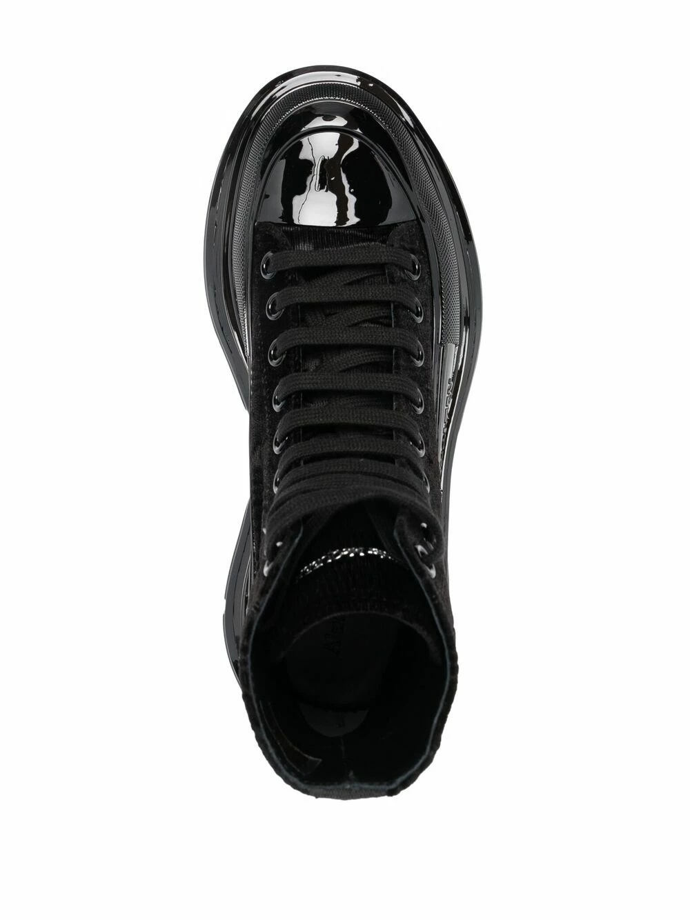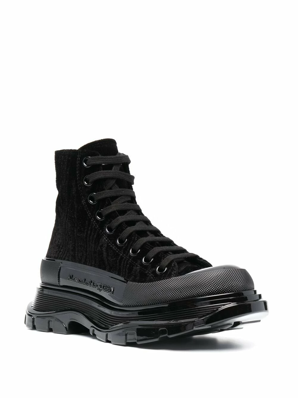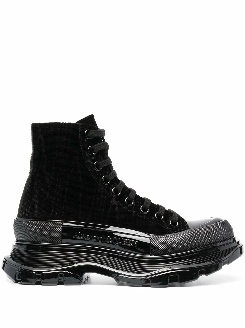 Alexander McQueen continues with the oversized sole theme, applying it to these Tread Slick ankle boots. Crafted from velvet, these lace-up pair have been detailed with a textured rubber wrap and a raised logo detail. Elevate your look…literally.