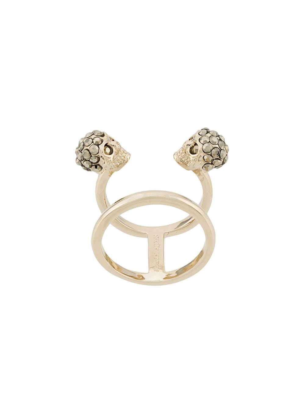 You can be both delicate and a rocker at heart. The proof lies in this Twin Skull double ring, delicately crafted from gold-tone brass. Alexander McQueen knows all your facets. Featuring a signature skull charm, crystal embellishments, an engraved logo and a double band.