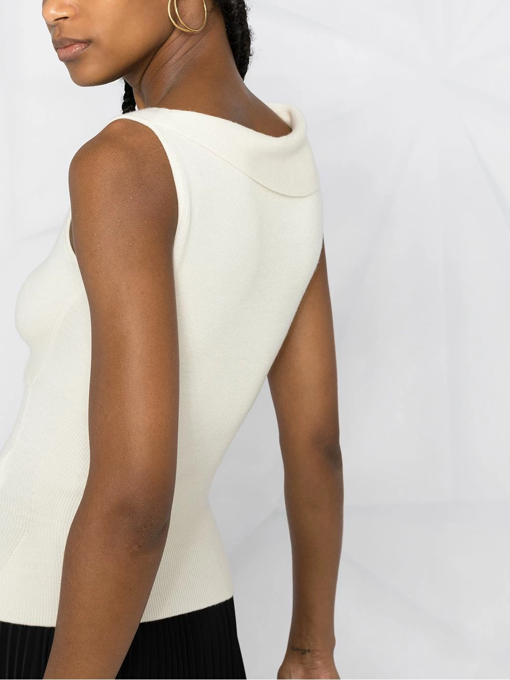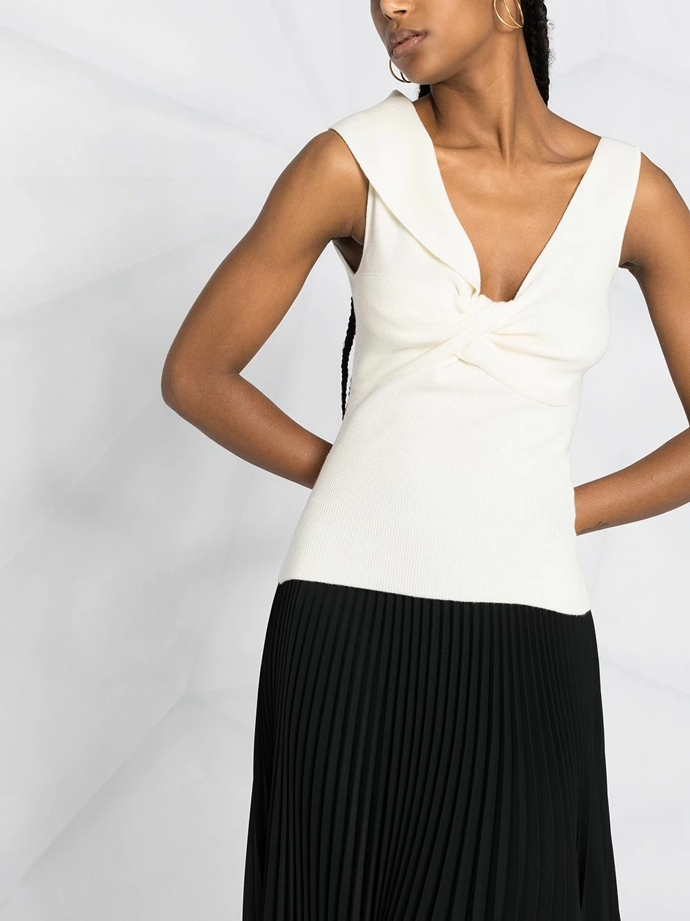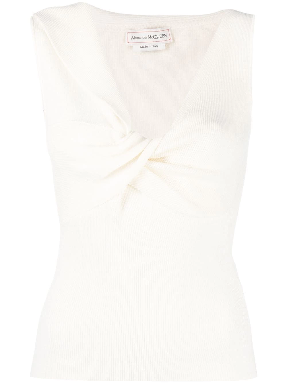You know that feeling when you really want to go to the party but it’s too cold outside? Alexander McQueen clearly does. That’s why they came out with this twist-front top, knitted from a warm ivory wool. You can thank us later.Â