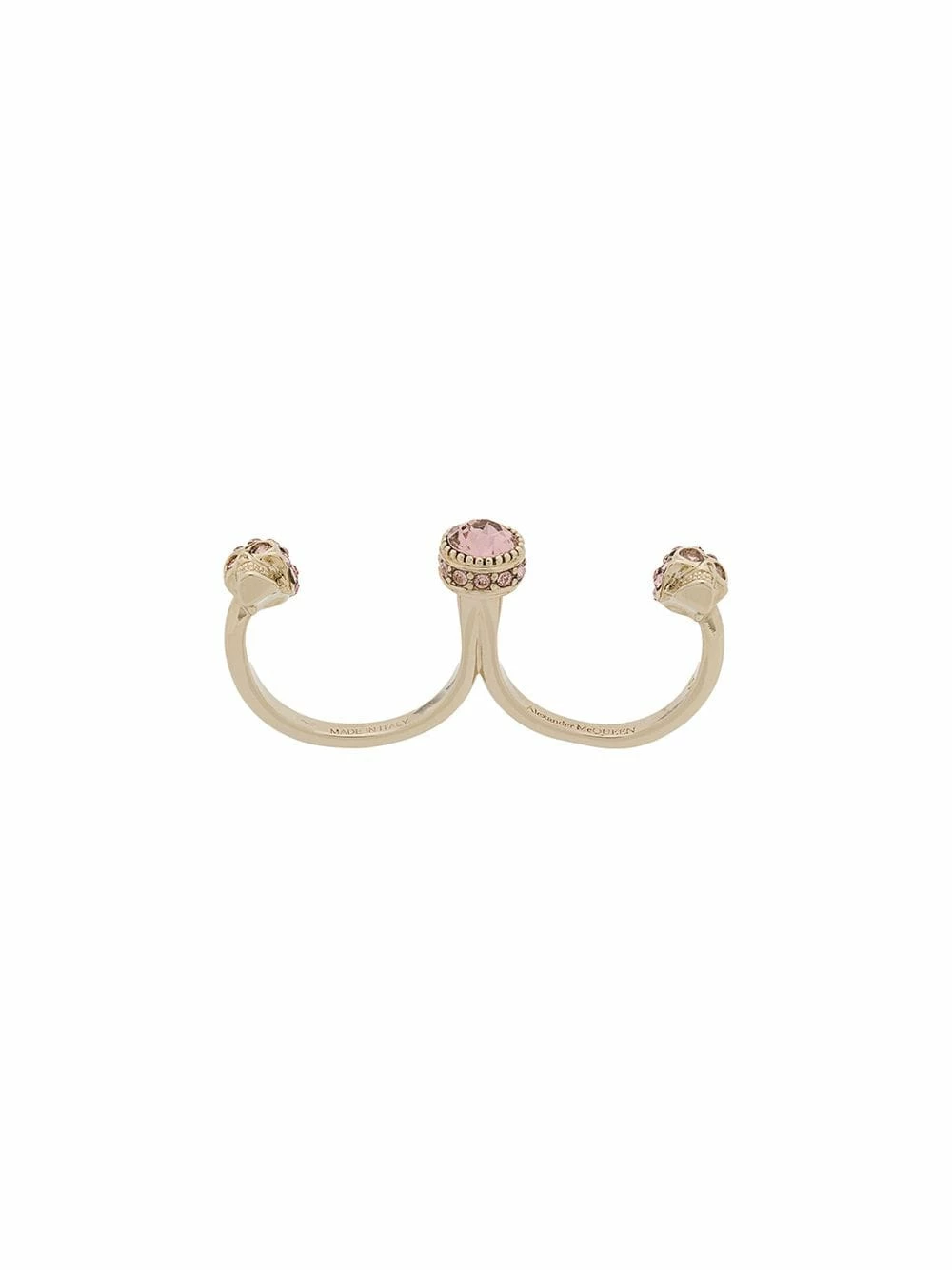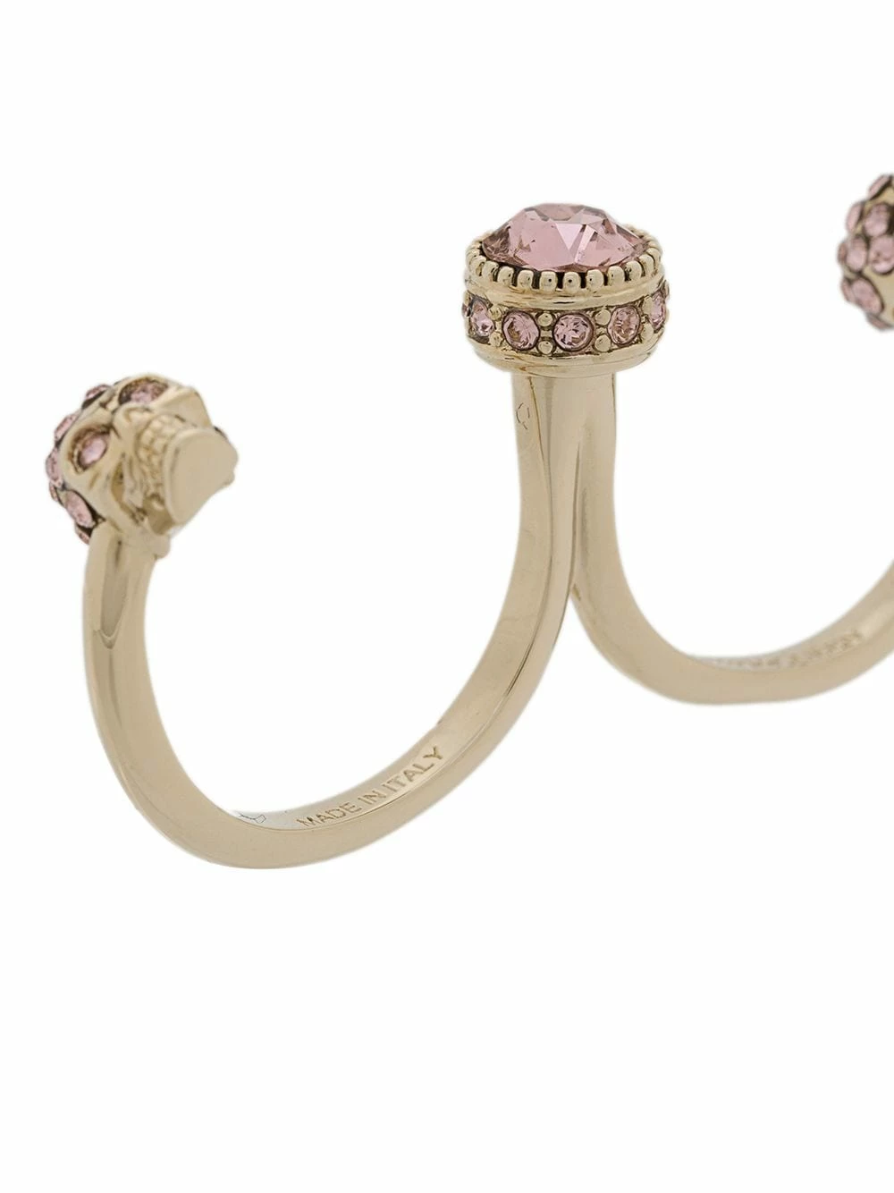 Update your jewellery collection with this gothic gold-tone brass two-finger ring from Alexander McQueen. It features a slip-on style, pink crystals and signature skull motif.