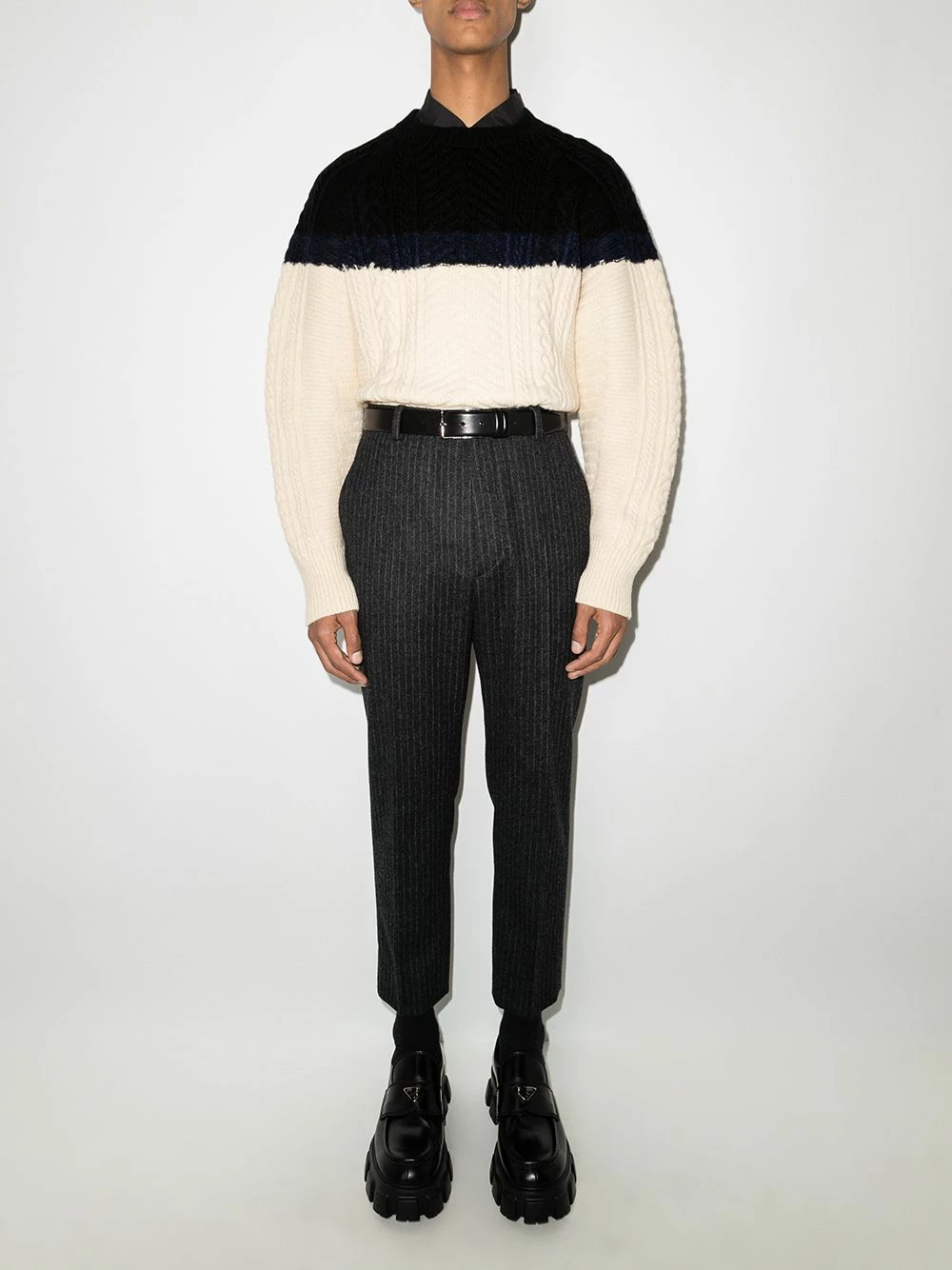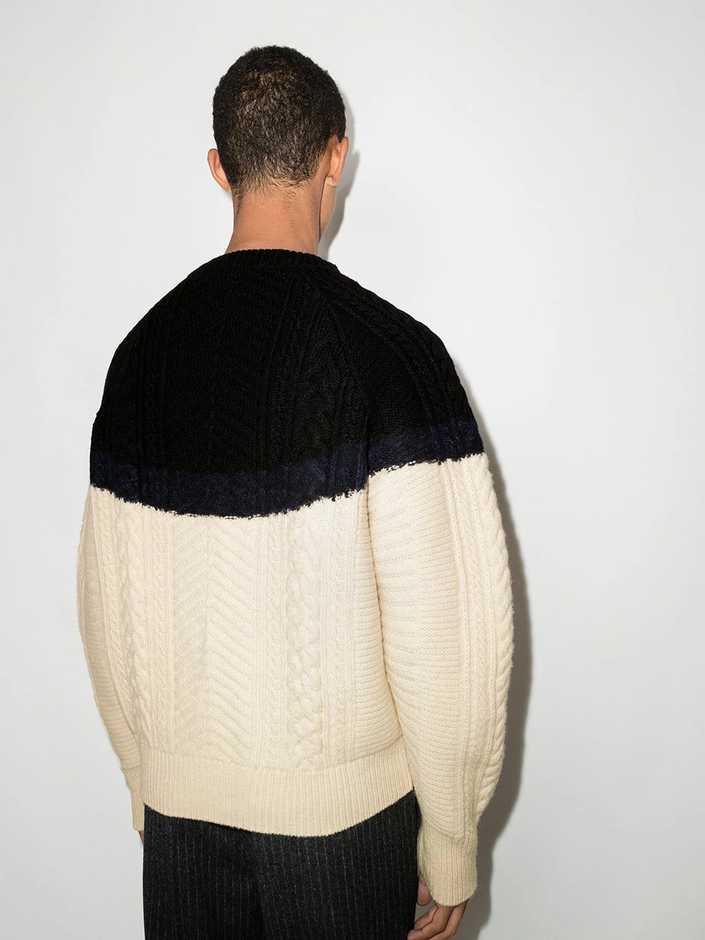 Adding a theatrical take on a classic silhouette, Alexander McQueen designs this jumper in a contrasting ivory and black colourway. Woven from a soft blend of wool and cashmere, this AW21 pick features a cable-knit construction and is cut for an oversized fit that seamlessly complements its crew neck.