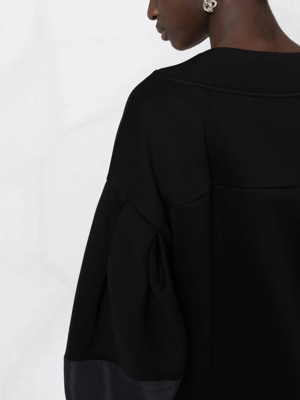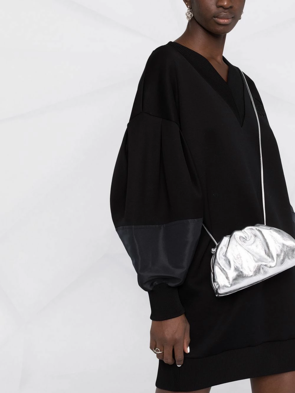 Defined by its long balloon sleeves and V-neck design, Alexander McQueen’s sweater dress is produced in a panelled design. The tonal creation features a brand emblem embroidered at the chest and a ribbed edge, showcasing the brand’s street-style edge.